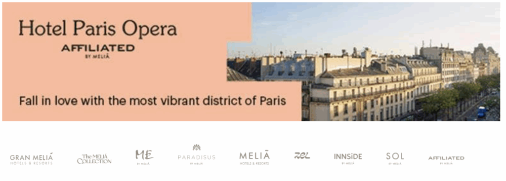 Discover our members in the windows of the Melià Paris Opéra hotel: Hôtel Paris O péra Affiliated by Melia:   Address in Paris: 3 Bd Montmartre, 75002 Paris –  click here
